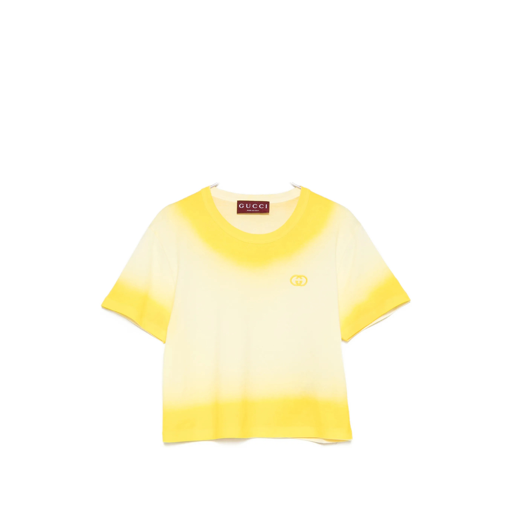 yellow ombre effect logo detail round neck short sleeves