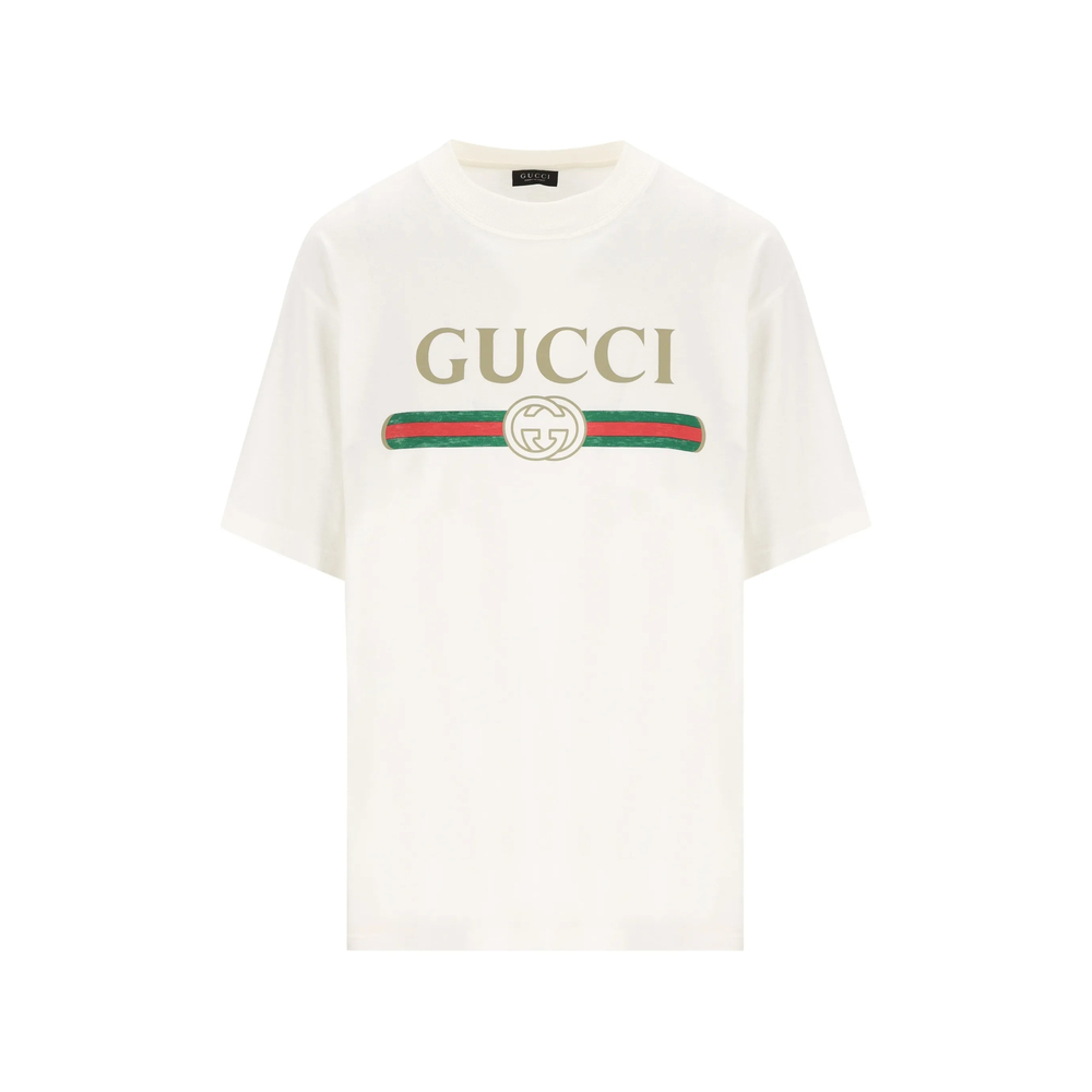 white logo print round neck short sleeves