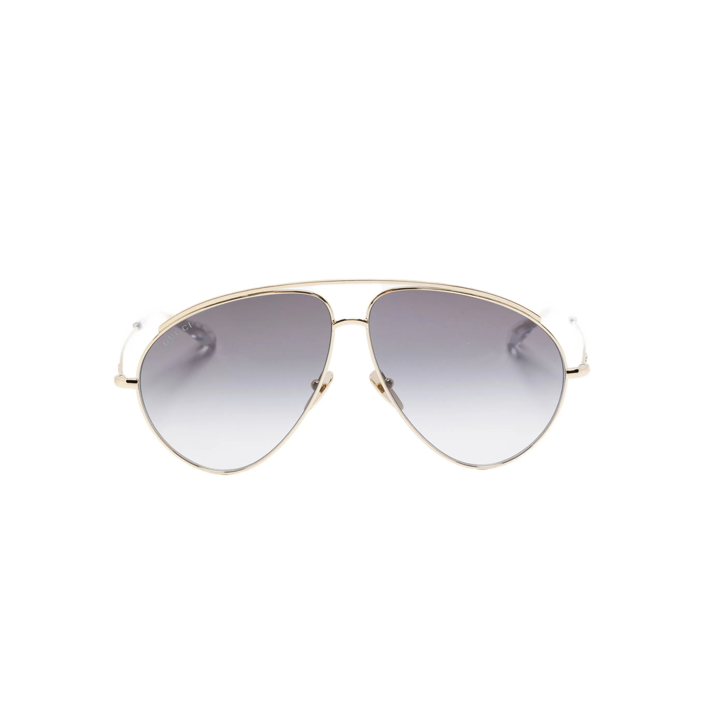 gold-tone pilot frame gradient lenses nose pads logo detail thin arms These glasses come with a protective case.