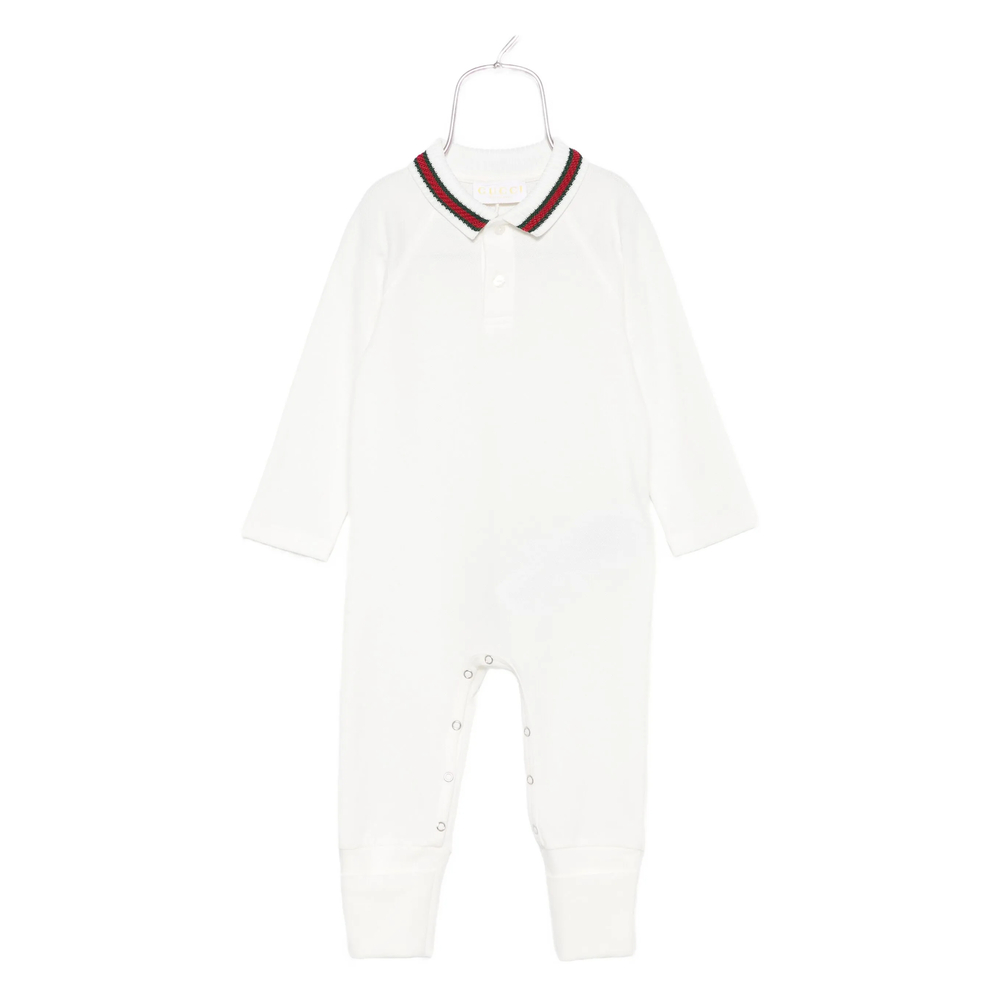 white long sleeves polo neck ribbed collar three-stripe detail button fastening