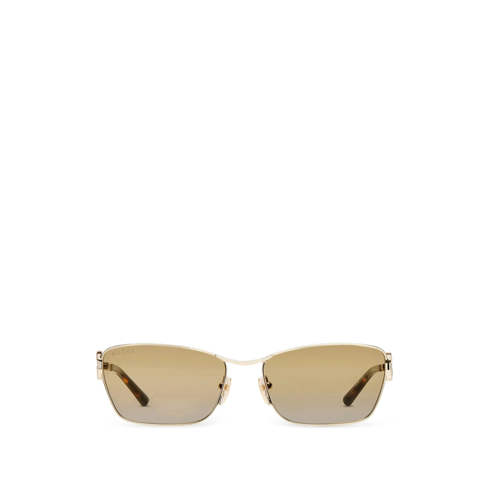 gold-tone geometric frame nose pads tinted lenses GG logo detail tortoiseshell effect These glasses come with a protective case.