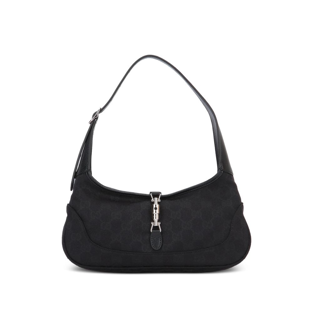 black adjustable top handle jacquard pattern silver-tone hardware This piece comes complete with a protective dust bag.