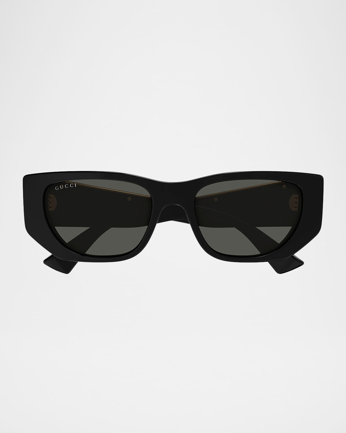 From the Subtle Web Collection, these acetate sunglasses by Gucci are designed with enameled web stripes and a logo at the temples. Lens/bridge/temple (in mm): 5318140 Geometric frames Fixed nose pads Wide, tapered arms Includes case and cleaning cloth 100% UVA/UVB protection Made in Italy