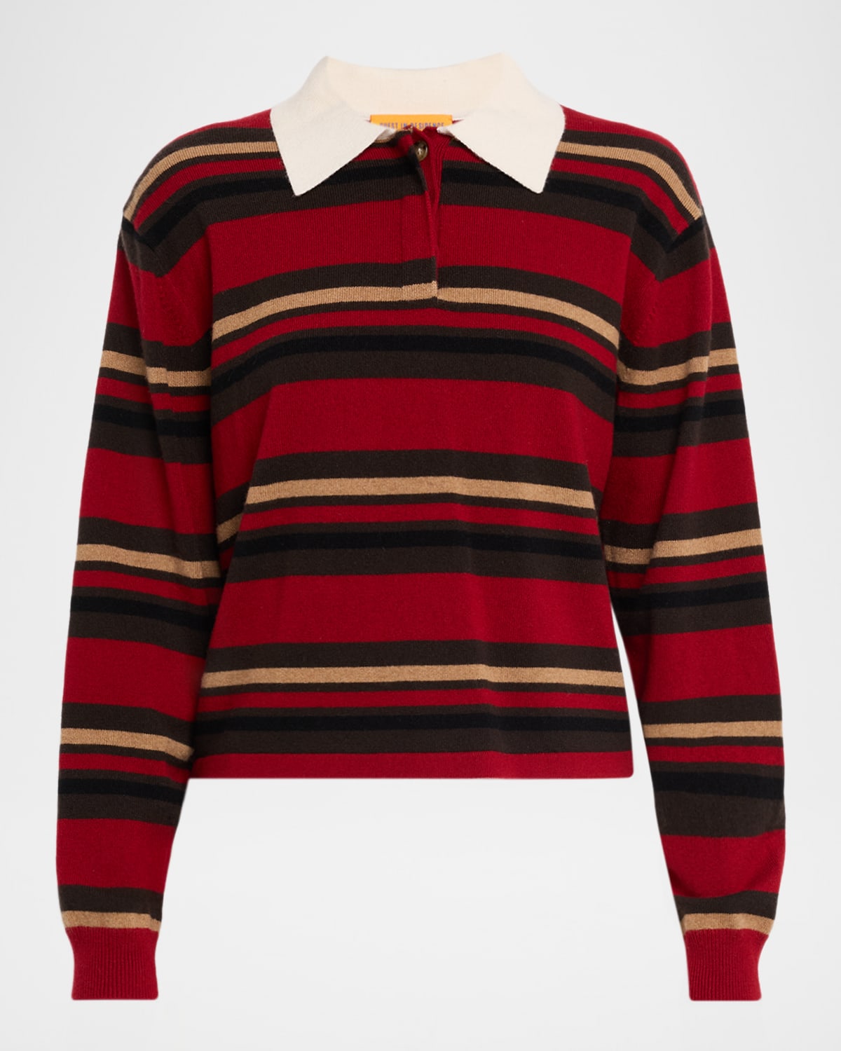 Knit from lightweight cashmere, this jersey rugbystyle sweater by Guest in Residence is patterned with horizontal stripes Contrasting polo collar; hidden threebutton placket Long sleeves; ribbed cuffs Relaxed fit Selfedge hem Pullover style Cashmere Imported