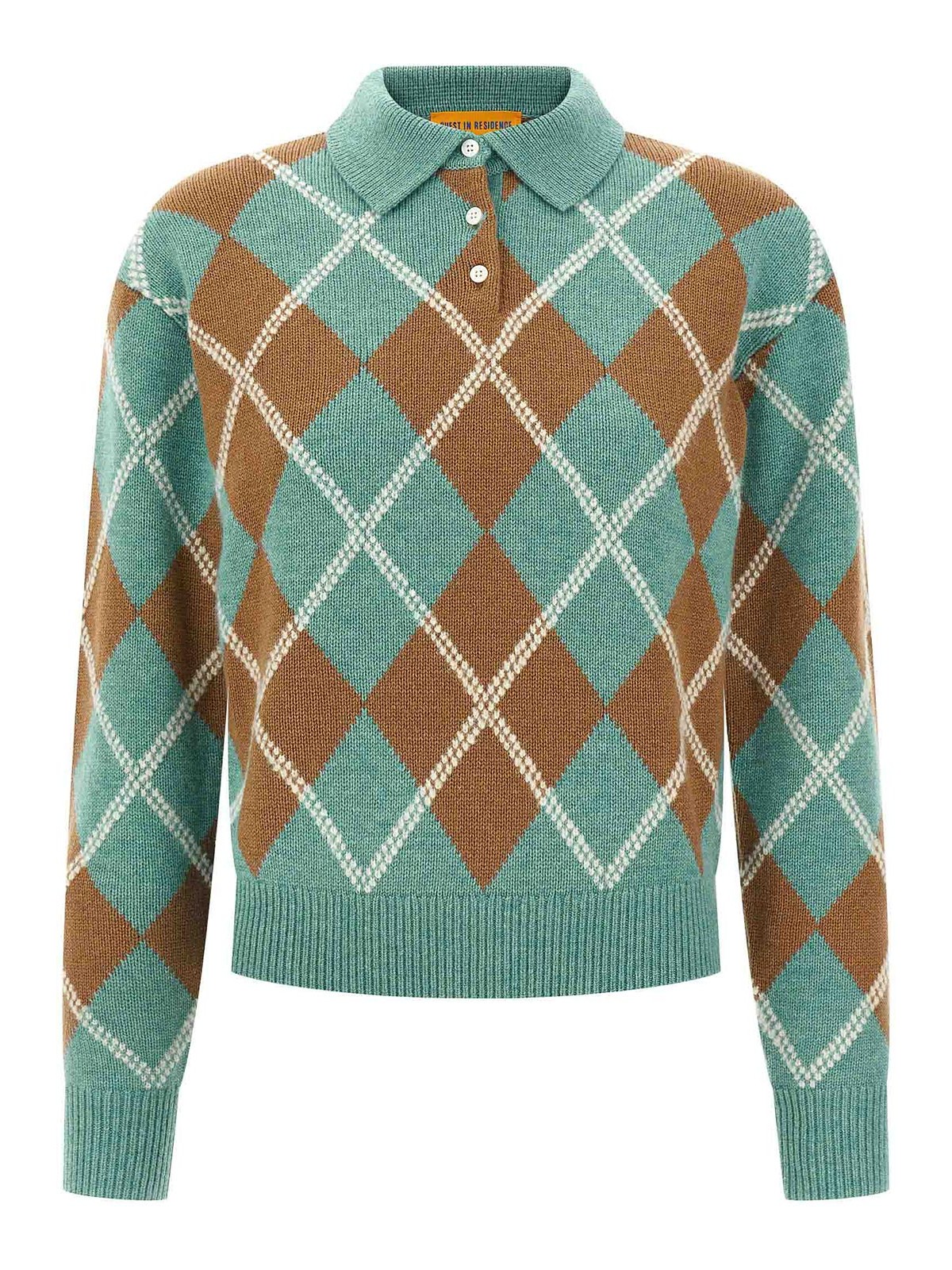 polo « collegiate argyle » et en mélange avec col et boutons à motif argyle intégral, manches longues à revers et épaules tombantes