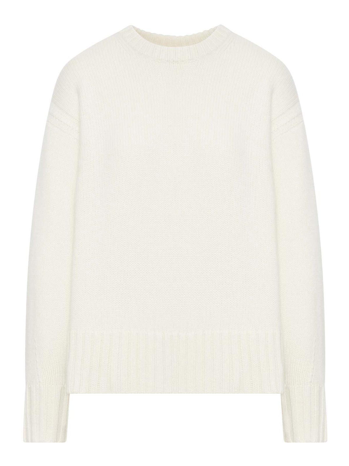 Encolure ras-du-cou, épaules tombantes, revers sur le bras, épaules surpiquées, col, poignets et ourlet côtelés, coupe oversize, fente latérale sur l'ourlet, bandeau, logo distinctif de la fille au centre du dos, le mannequin est grand et porte une taille S, haute qualité en provenance de Mongolie, couleur crème