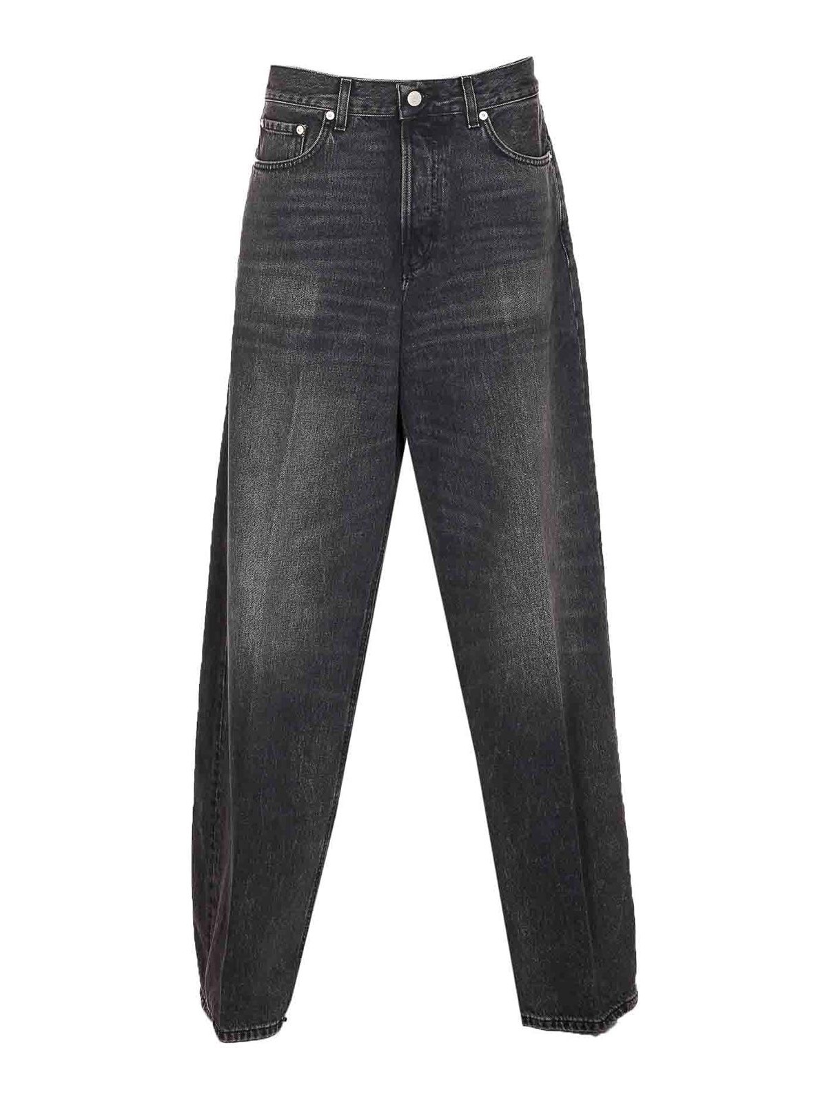 Jeans Haikure Black Bethany, boutons frontaux, jambe large, nom de la couleur du créateur: noir