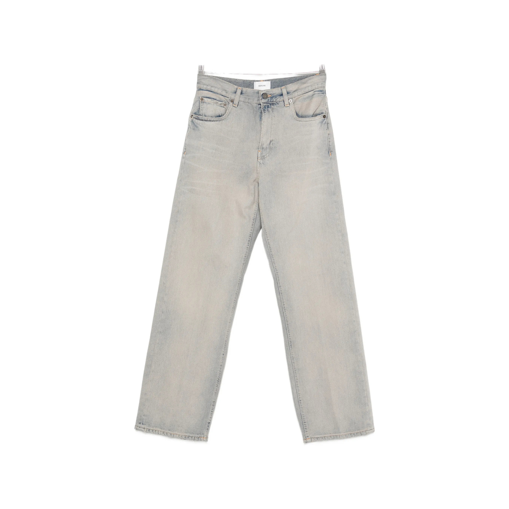 light blue straight leg five pockets belt loops button fastening