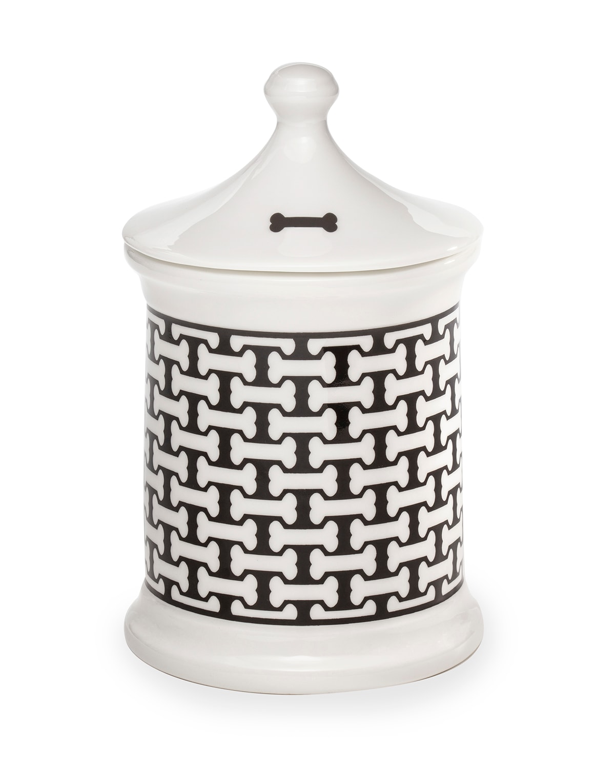 Treat jar made of fine bone china. Approx. 4.3"Dia. x 4.9"T. Hand wash. Imported.