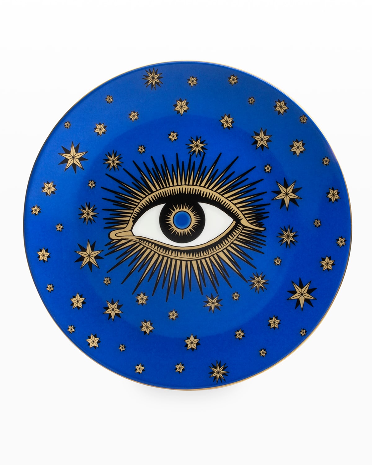 Legend has it, the evil eye wards off malevolent spirits and brings luck. Whether or not you're convinced by the folklore, don't leave it to chance and enjoy this stunning, decorative coupe plate Handcrafted of fine bone china and handpainted by artisans Approx. 8.3"Dia. Hand wash Made in United Kingdom