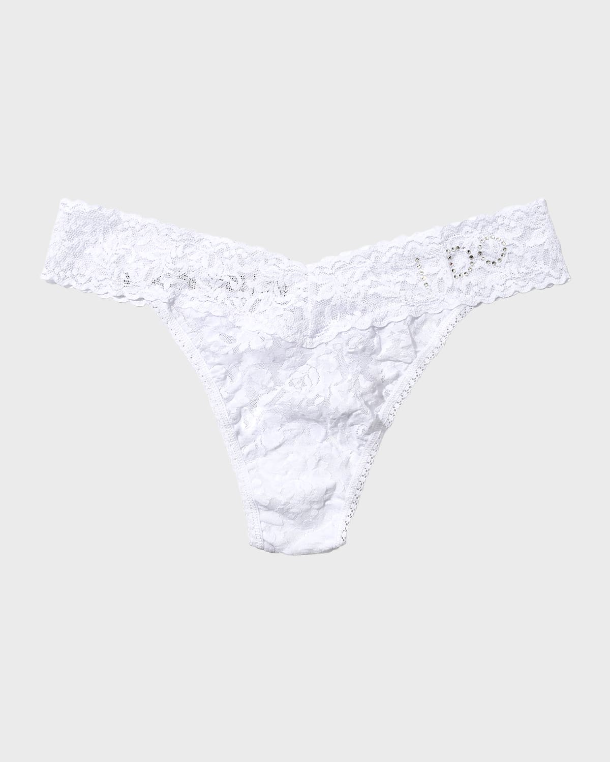 Hanky Panky "Say I Do" lace thongs with rhinestone "I Do" detail One size fits sizes 414 best Original rise sits high on the hips Minimal seat coverage Nylon/polyamide Made in the USA