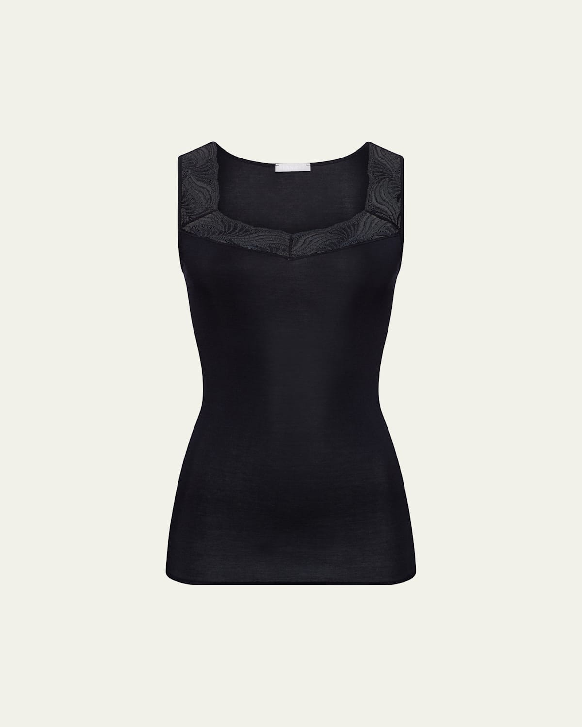 Hanro "Cotton Delight" tank top with lace trim Scoop neckline Sleeveless Slim fit Pullover style Cotton/elastane Made in Hungary