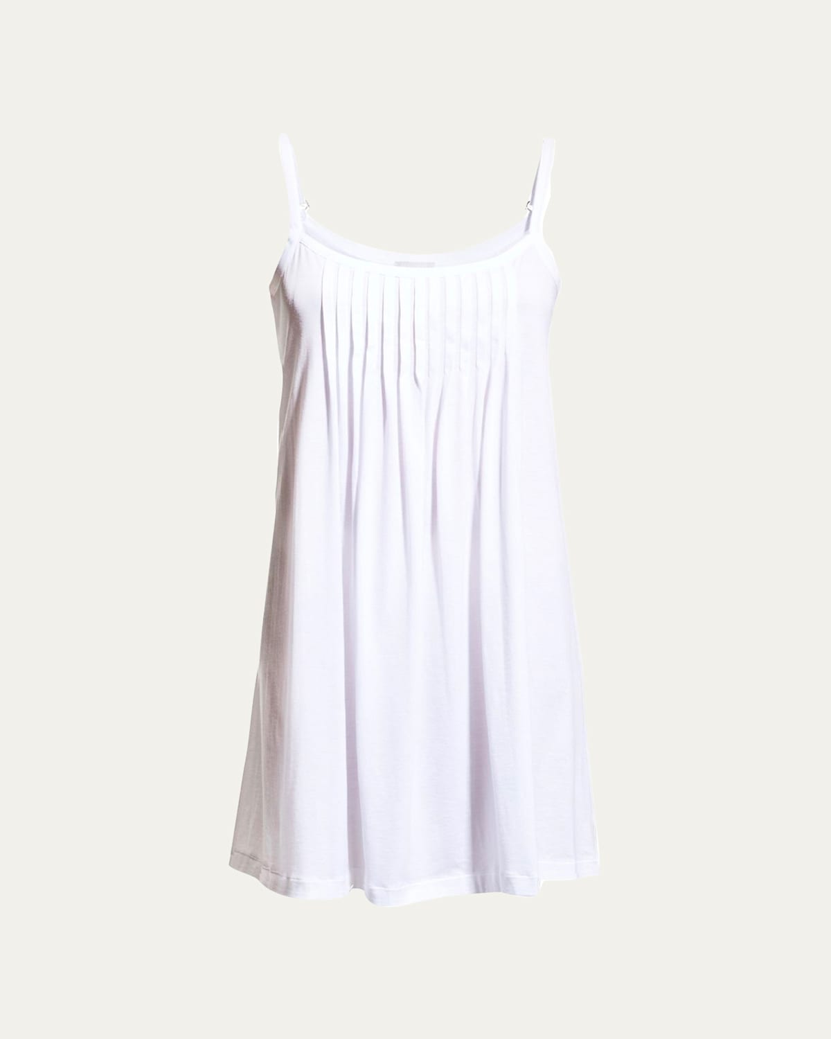 Hanro "Juliet" babydoll with pleated bib. Scoop neckline and back. Thin, adjustable shoulder straps. Relaxed silhouette. Straight hem. Mercerized cotton. Made in Portugal.
