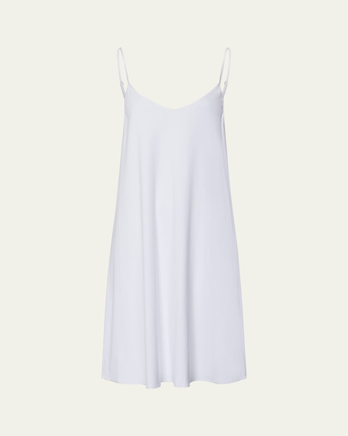 Hanro chemise crafted in airy mercerized cotton with luxurious silk trim STANDARD 100 by OEKOTEX® - This item has been laboratory tested to meet 100 control parameters and is free of harmful substances Approx. 37.5"L from shoulders to hem V neckline Sleeveless Adjustable straps Hem hits around the knee Aline silhouette Slipover style Cotton Made in Portugal