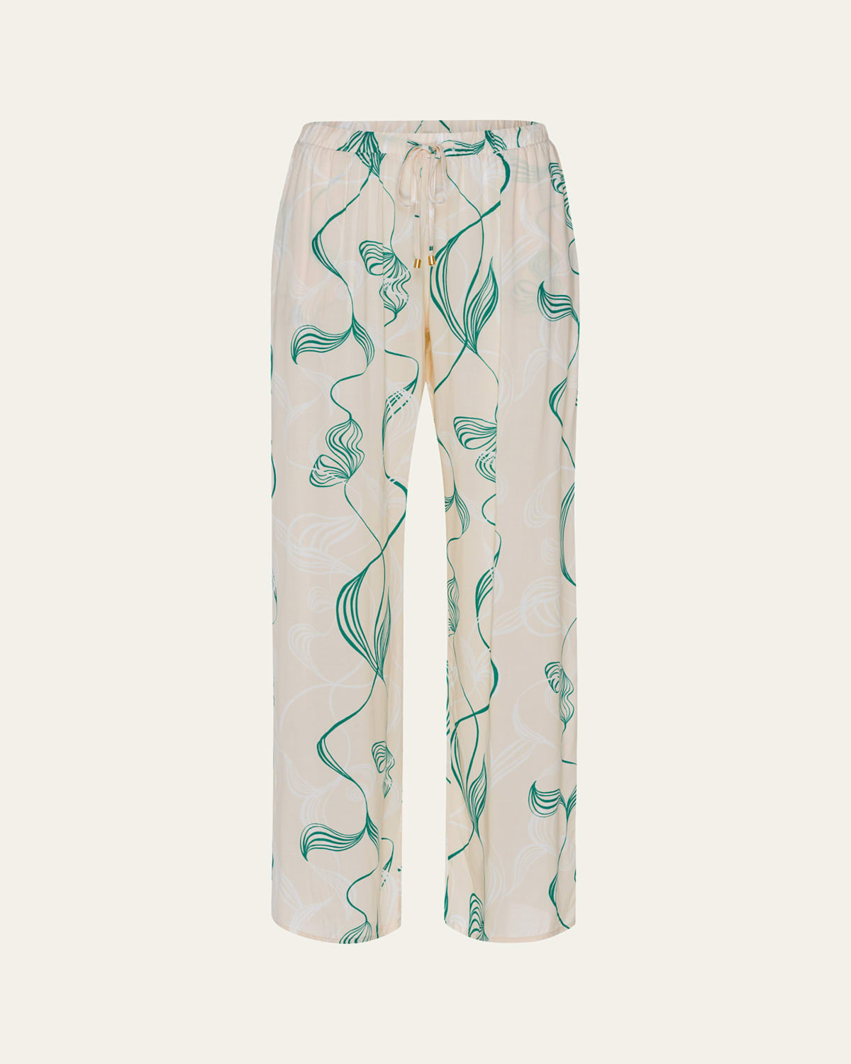 Hanro printed woven pajama pants Elasticized drawstring waistband Side seam pockets Cropped at the ankle Relaxed, straight legs Pullon style Viscose Made in Portugal