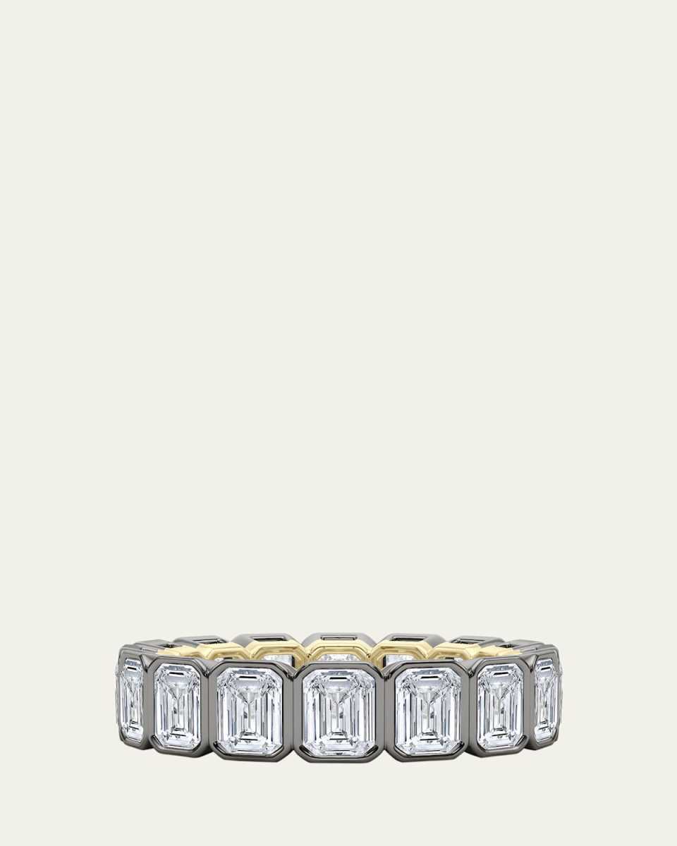 HauteCarat eternity ring Twotone 18karat gold Emeraldcut labgrown diamonds D colorless white diamond with VVS clarity 9.0 total diamond carat weight Professional cleaning recommended Imported