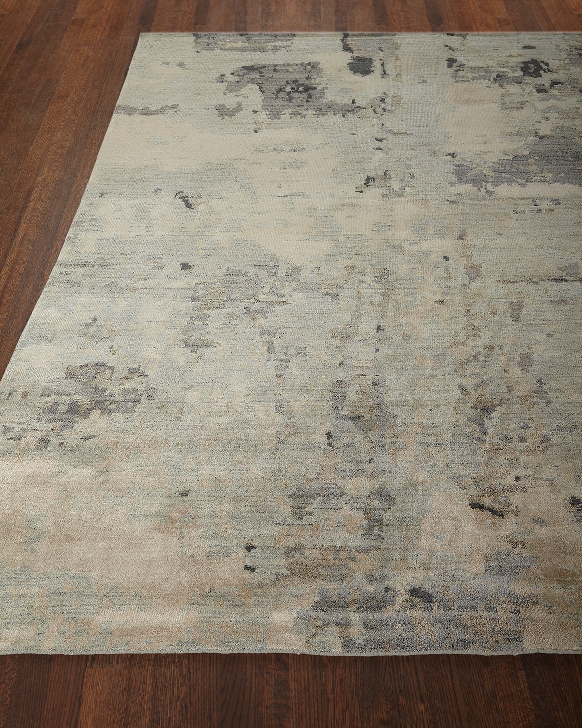 Handknotted transitional rug is woven using premium handspun wool and Silkette® rayon. Size is approximate; we recommend use of a rug pad. Imported.