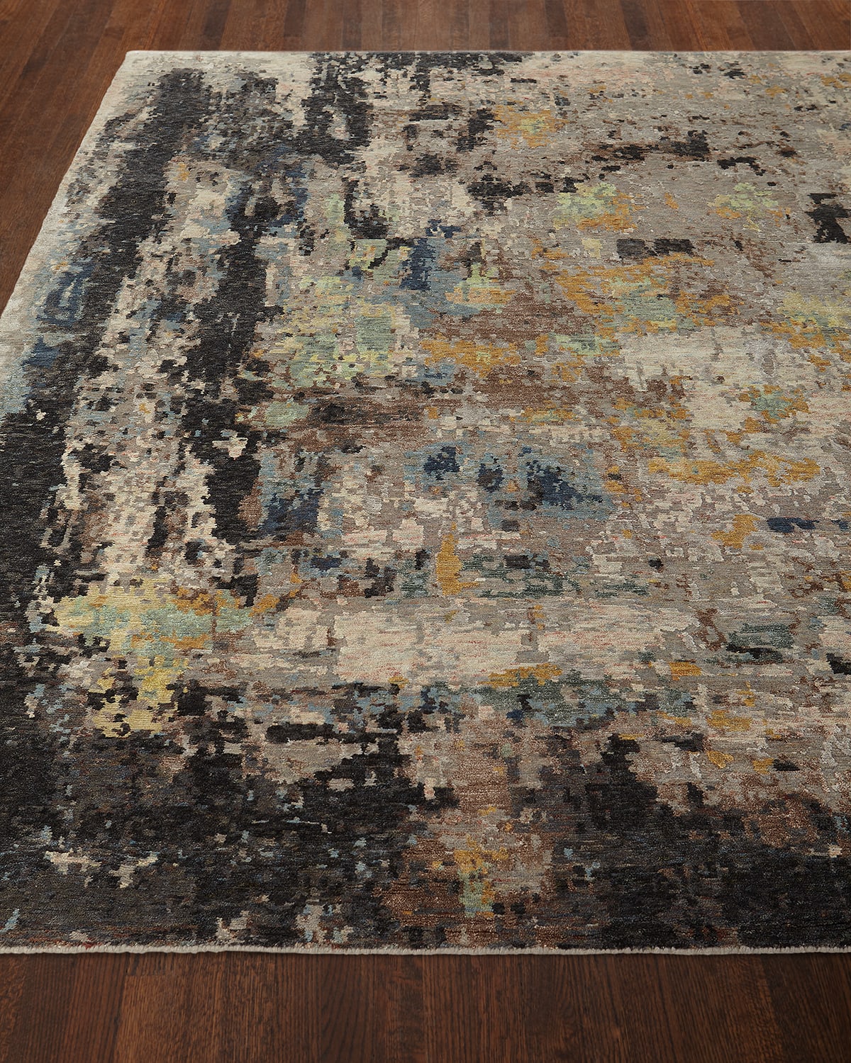 Handcrafted, contemporary rug. Premium wool and Silkette™. Wool/viscose pile. Cotton foundation. Handknotted Tibetan weave. Made by master artisans. All sizes approximate. We recommend use of a rug pad (not included). Imported.