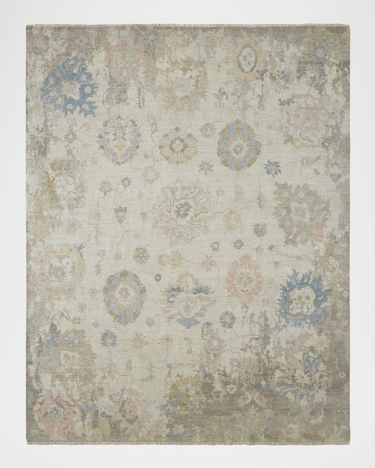 Influenced by classic Oushak designs and other timeless motifs, this highend collection speaks to today's sophisticated décor tastes through harmonious combinations of pattern and carefully curated fashionforward color palettes. Meticulously handknotted, each of these stylish rugs features a zero pile for today's soughtafter vintage look. Handcrafted of wool Item Weight (Lbs.): 70.0 Vacuum regularly; professional clean only Size is approximate; we recommend use of a rug pad (not included) Imported