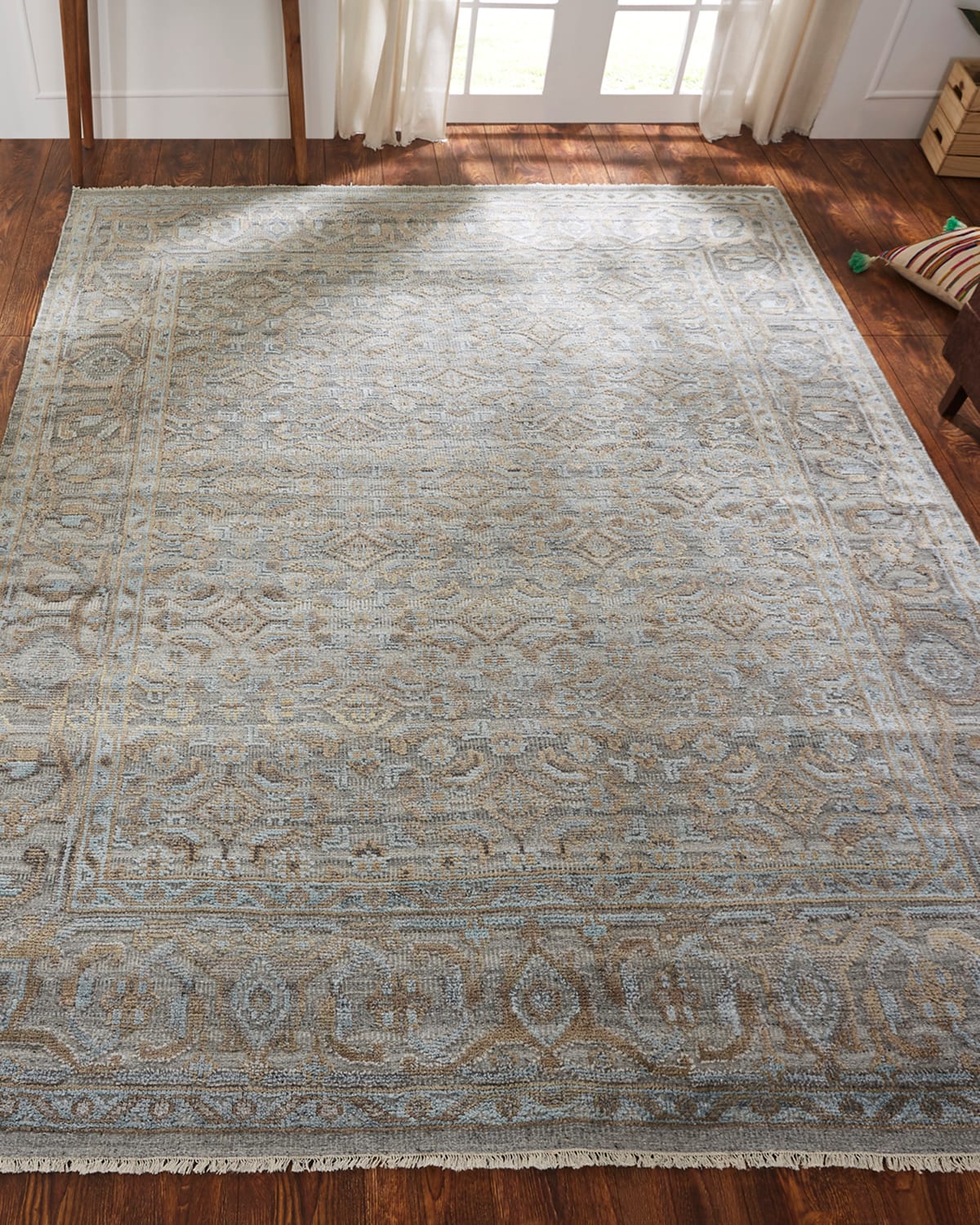 Contemporary rug. Handknotted wool pile. Size is approximate; we recommend use of a rug pad (not included). Imported.