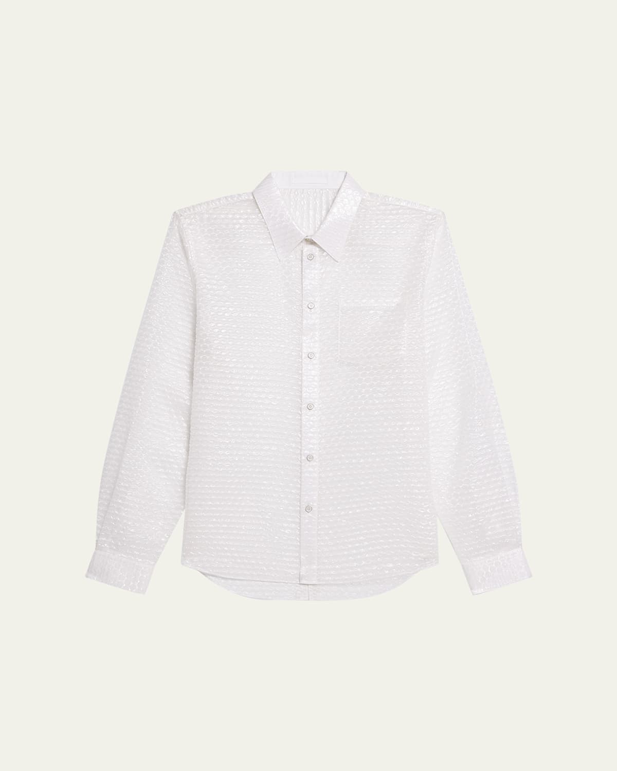 Helmut Lang sheer bubble shirt Point collar Long curved sleeves with button cuffs Chest pocket Relaxed fit Rounded hem Buttonfront Nylon/polyamide/polyester/silk Unlined Dry clean Imported
