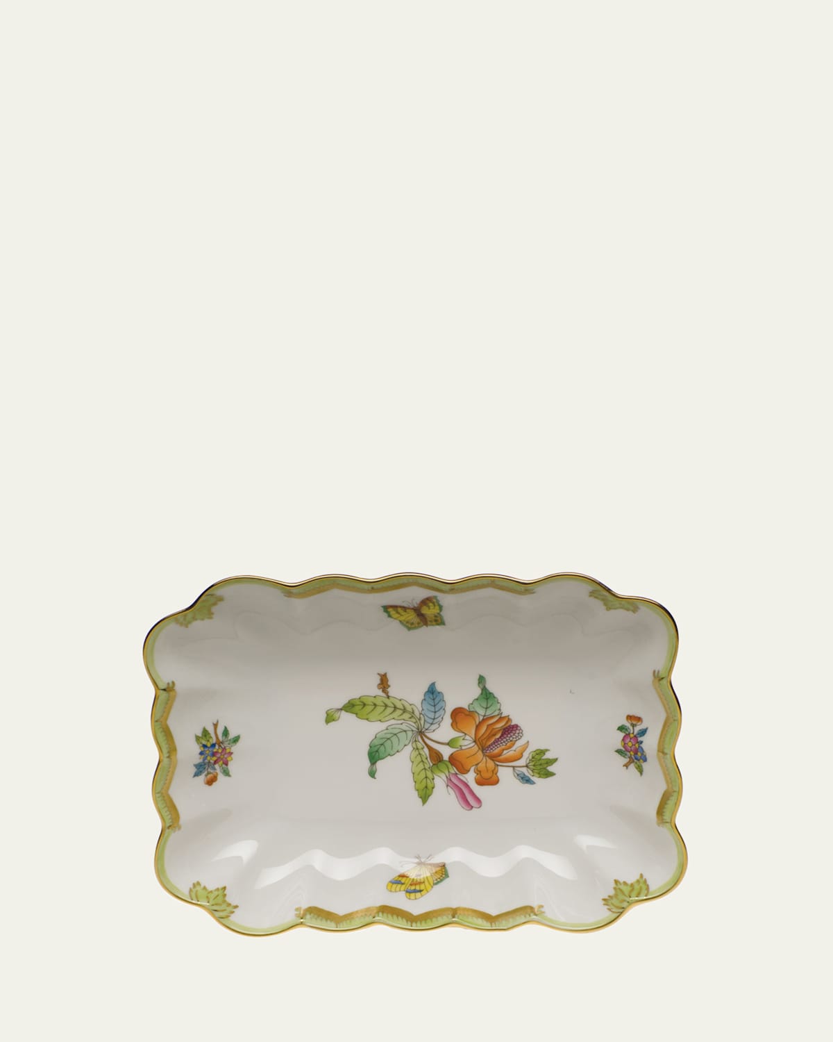 Handcrafted oblong dish. Made of porcelain. 7.25"L x 5.5"W. Made in Hungary.