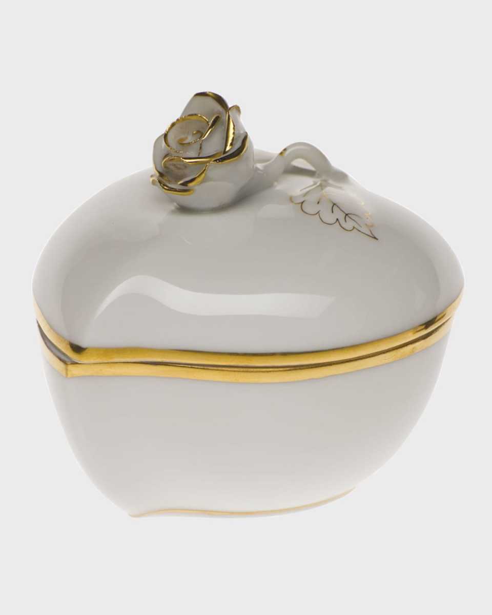 Heart bonbon with rose finial. Made of porcelain. Made in Hungary.