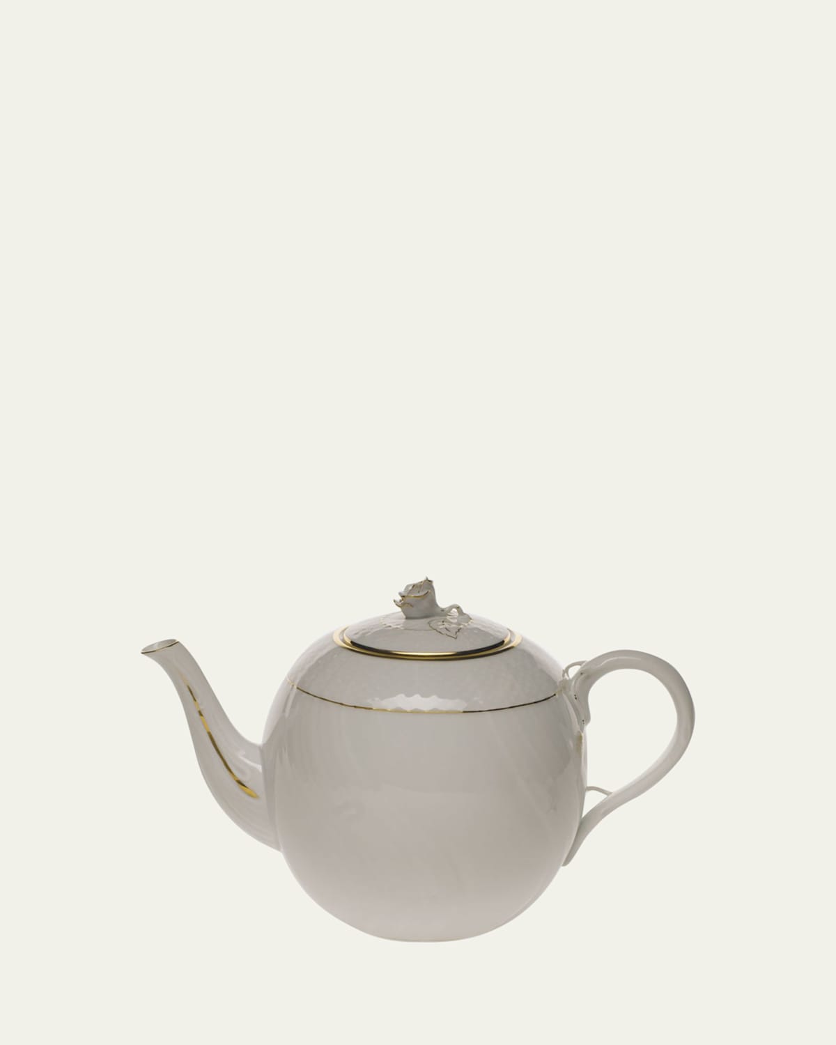Teapot with rose finial. Made of porcelain. Holds 60 ounces. Approx. 6.5"T. Made in Hungary.