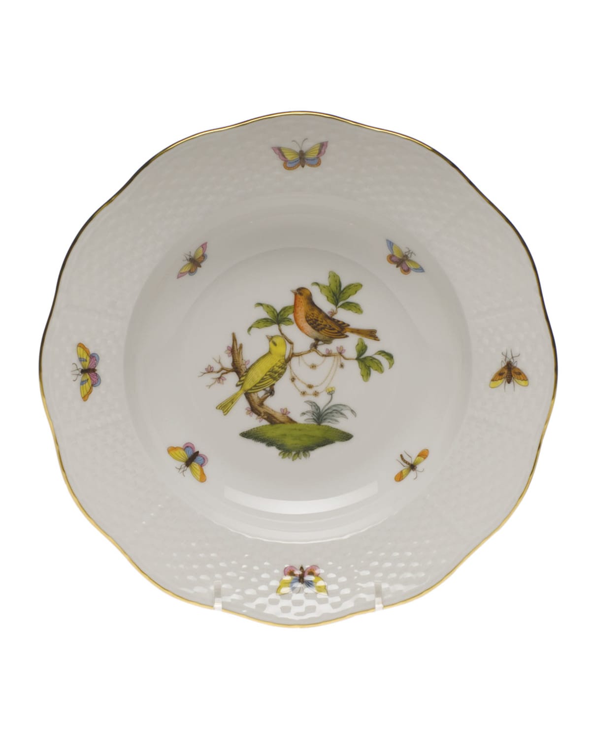 Handcrafted rimmed soup plate. Made of porcelain. Approx. 8"Dia. Made in Hungary.