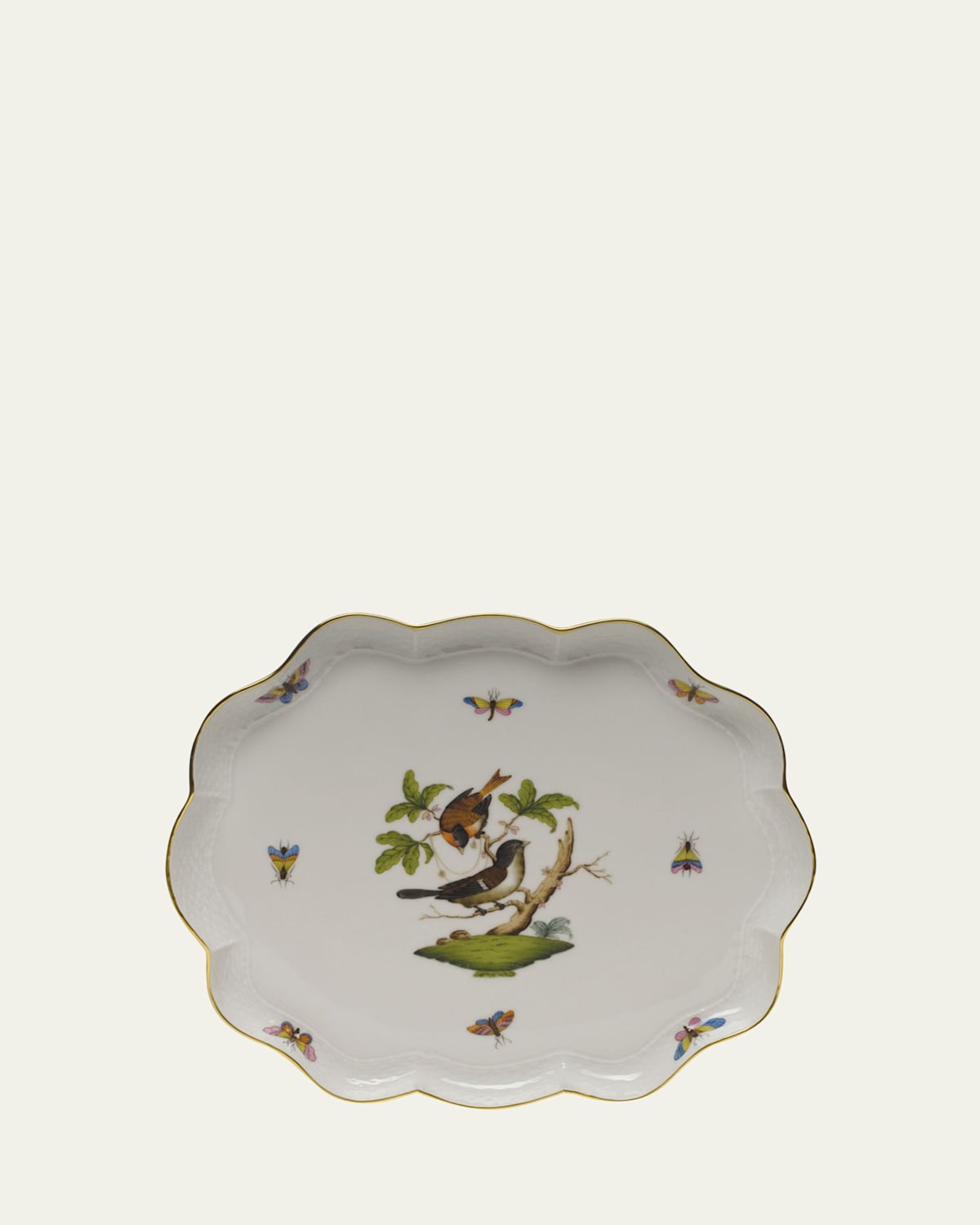 Scalloped tray made of porcelain. Approx. 11.25"L x 9.5"W. Made in Hungary.