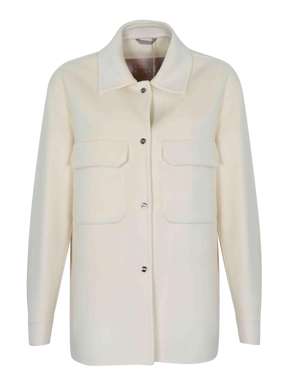 Texture lisse doublement brossée, cisaillée et pressée, manches longues, col de chemise, poches à rabat, boutons non doublés