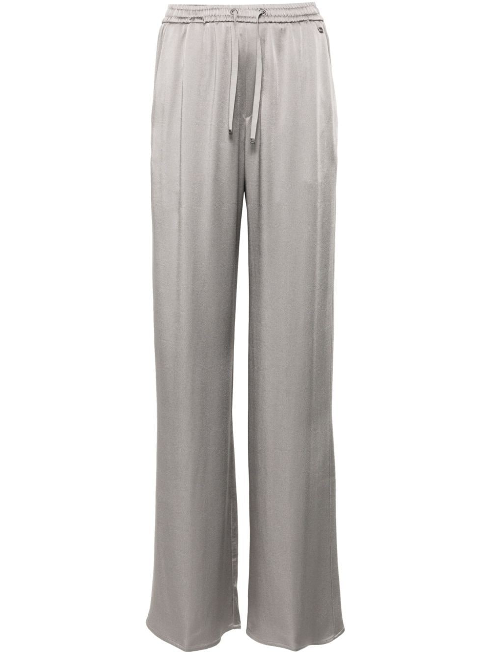 medium grey cotton blend crepe texture elasticated drawstring waistband silver-tone logo plaque two diagonal pockets to the sides straight leg