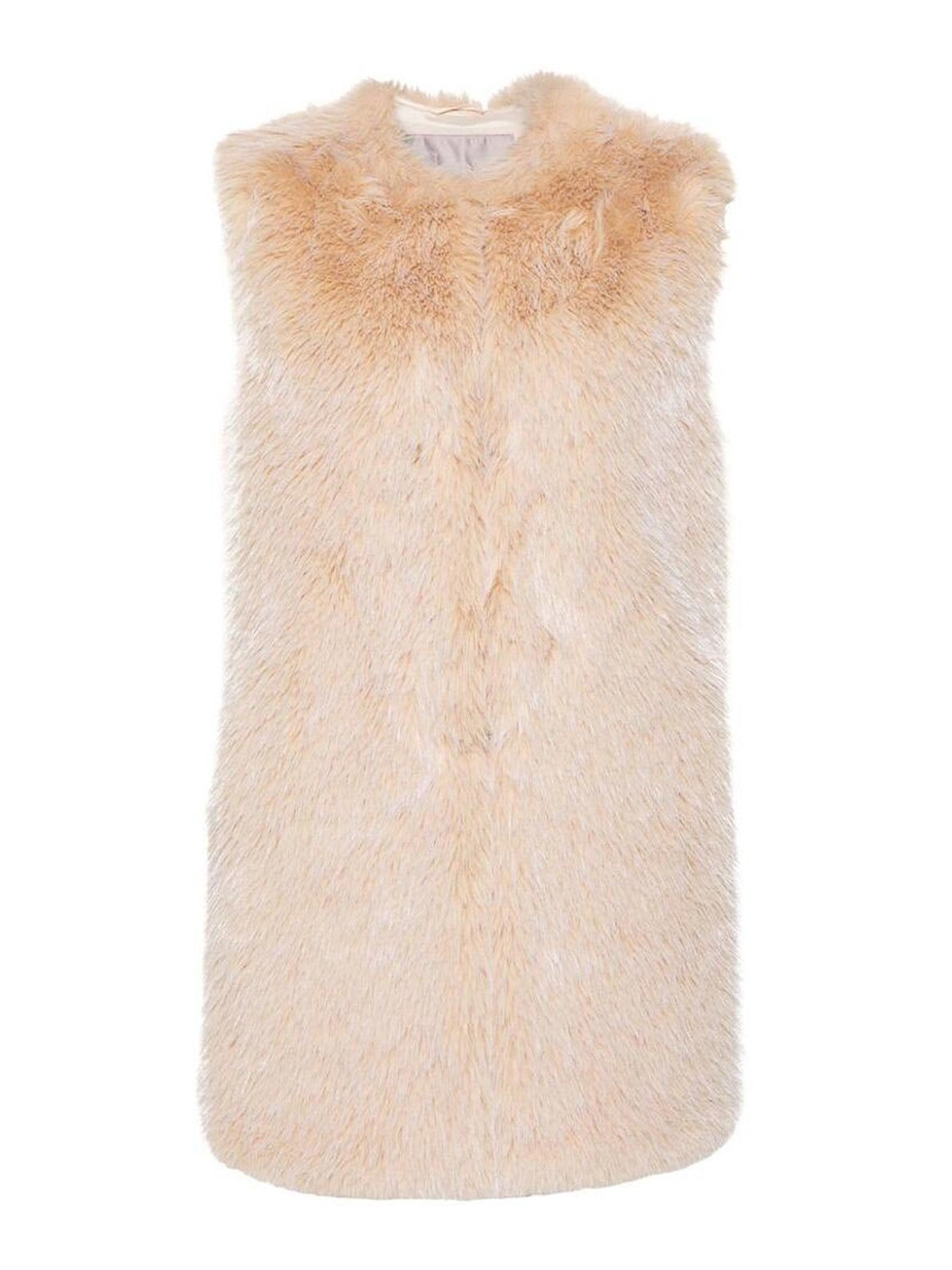 Faux poches fendues latérales beiges, sans col et aillet, sans manches, à deux poches latérales, ourlet droit