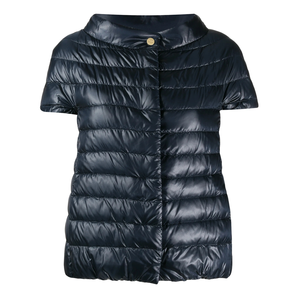 Navy blue Great short-sleeved down jacket from Herno featuring a mock neck, a front button fastening, side pockets and a straight hem.