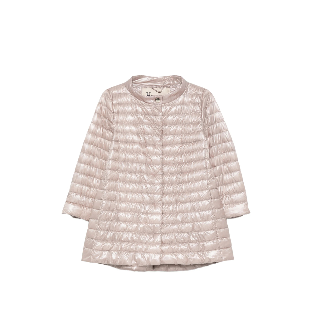 pink quilted round neck three-quarter sleeves snap-button fastening