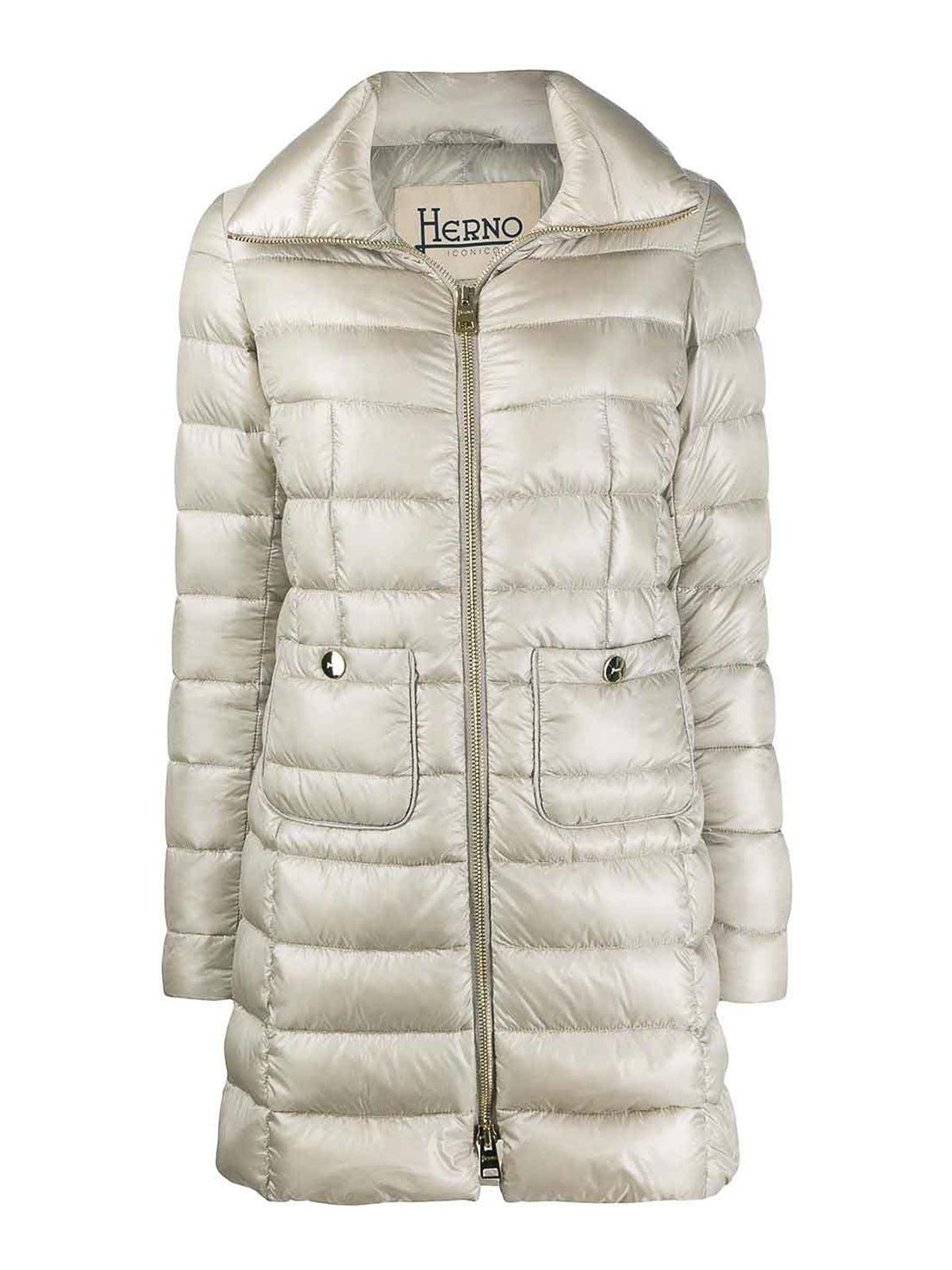 Style bouffant argenté, col évasé, fermeture éclair, manches longues, deux poches