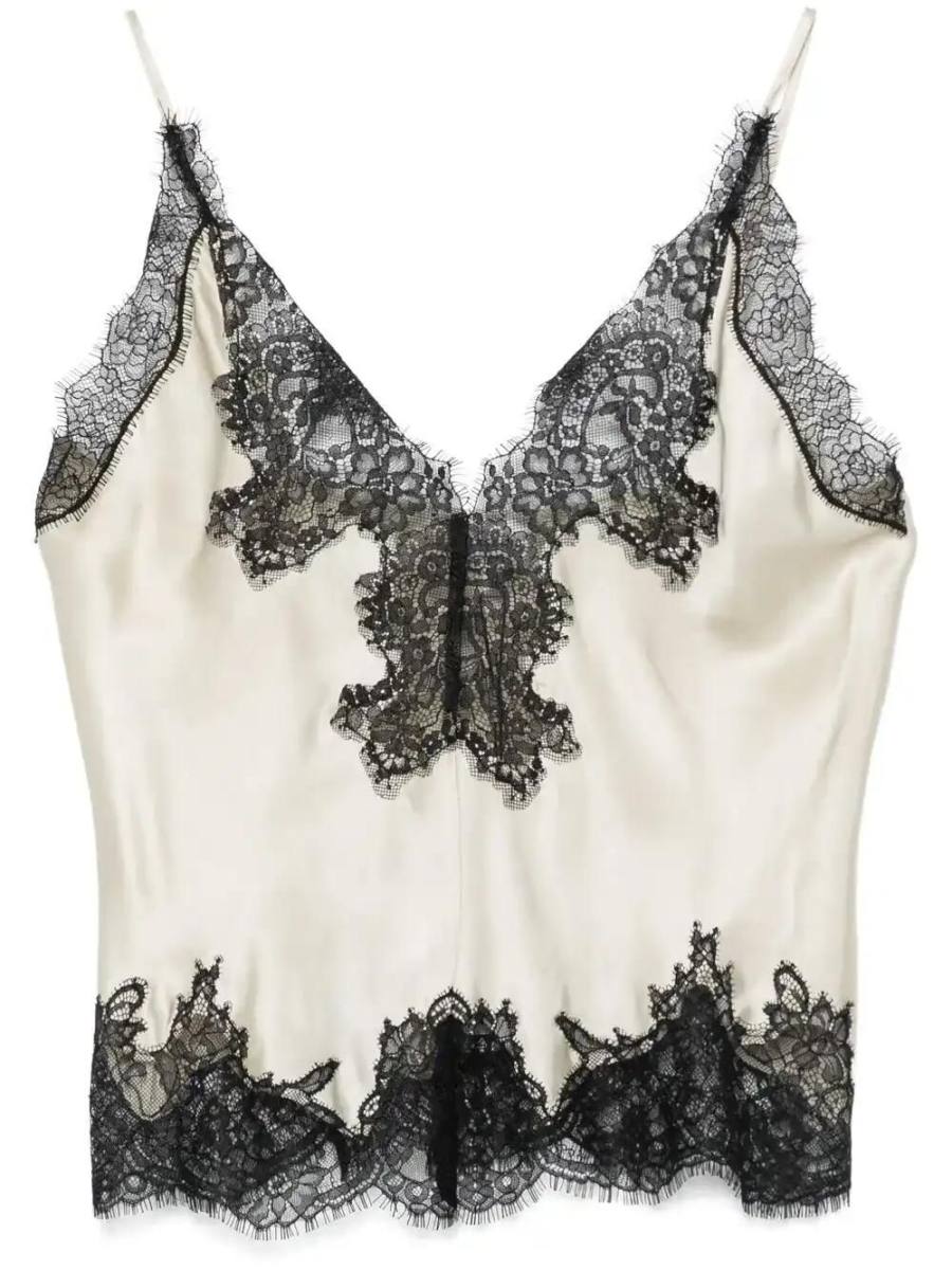 light beige adjustable spaghetti straps lace detailing scallop hem illusion neck