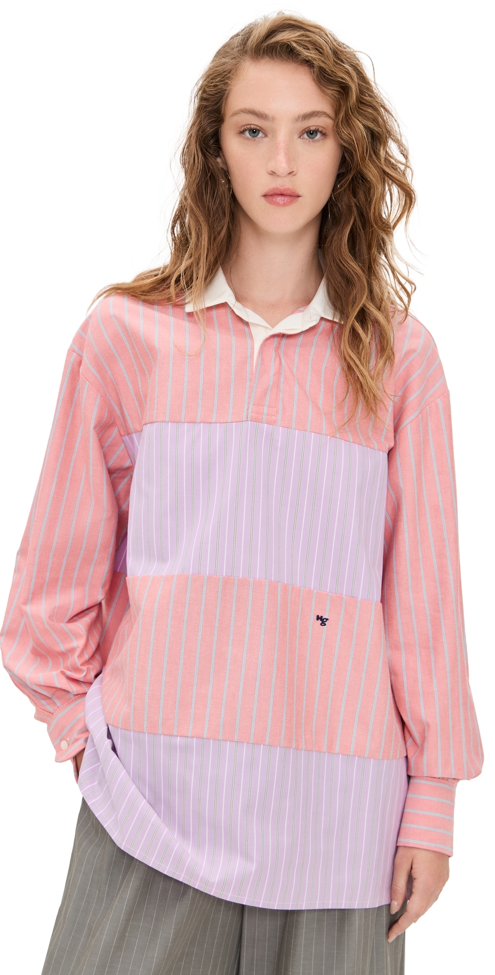 Fabric: Lightweight, non-stretch shirting. Paneled design and striped pattern. Collared neck. Long sleeves with button cuffs. Partial button placket. Shell: 100% cotton. Wash cold. Made in Italy. Measurements: Measurements from size S Length: 28.75in / 73.0cm, from shoulder