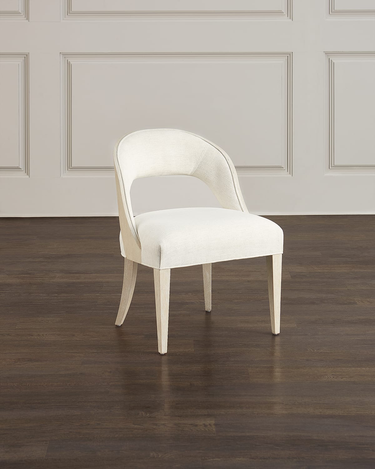 This serene finish combines sandstone cathedral and quartered oak veneers, featuring a light wire brushing technique. The application of transparent and opaque stains enhances the overall effect. Handcrafted of engineered hardwood and oak veneers Upholstery, polyester/linen Overall, approx. 24"W x 24"D x 33"T Seat, 24.25"W x 20.75"D x 19.5"T Finished back Weight, 25.0 lbs Set of two Imported Boxed weight, approximately 68.0 lbs