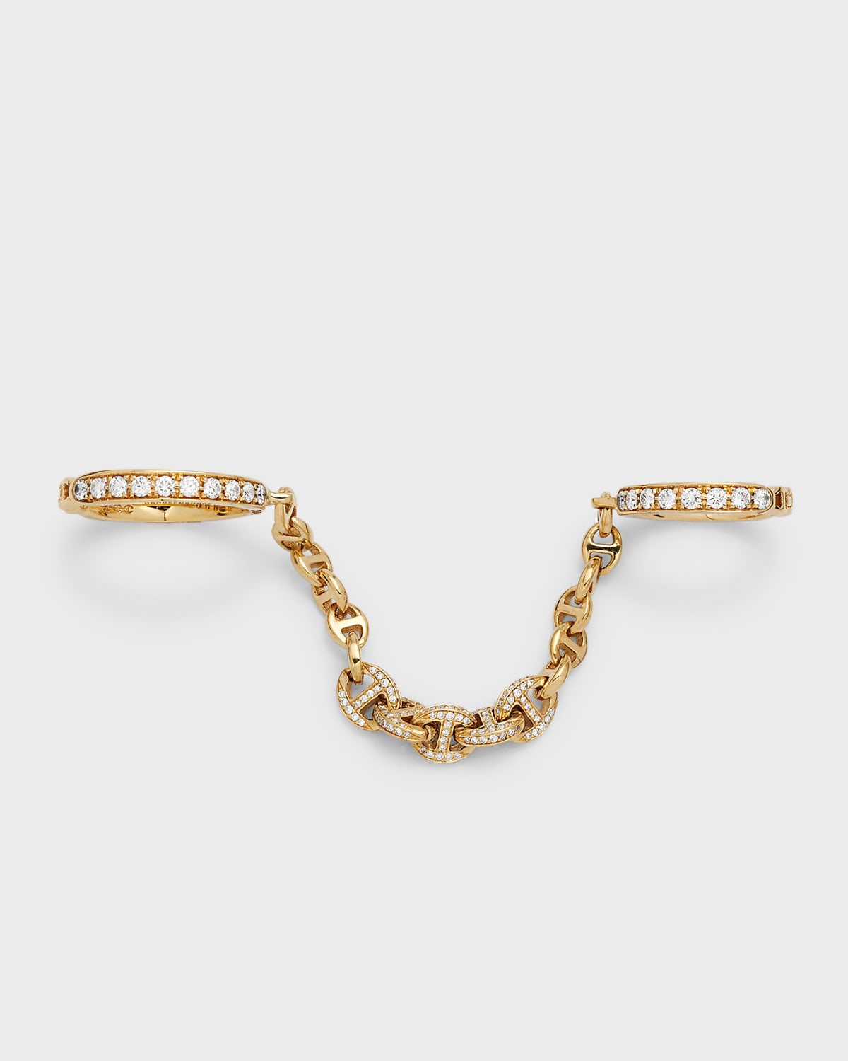 Hoorsenbuhs twofinger ring Approx. 3mm rings; 5mm links 18karat solid yellow gold Round white diamonds Diamond total carat weight: 1.91 Made in USA