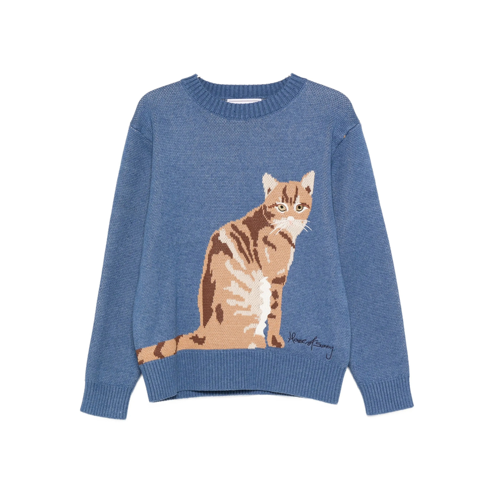 blue cat print crew neck long sleeves ribbed cuffs ribbed hem