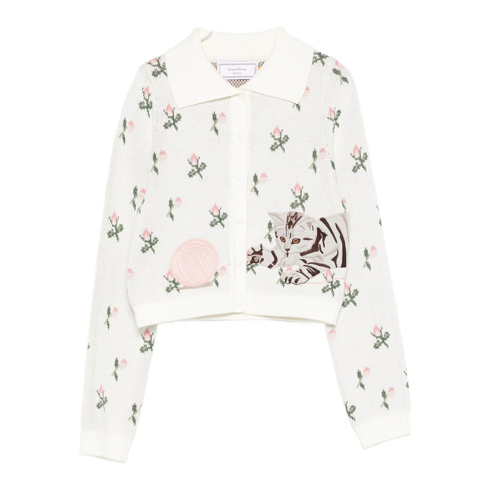milk floral pattern cat embroidery button fastening spread collar long sleeves