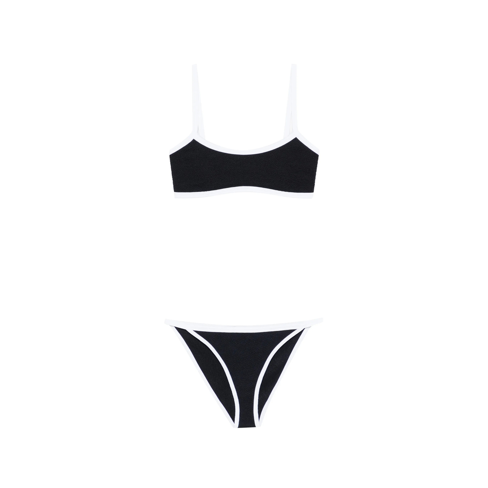 black white trim bikini top bikini bottoms spaghetti straps Be mindful to try on swimwear over your own garments.