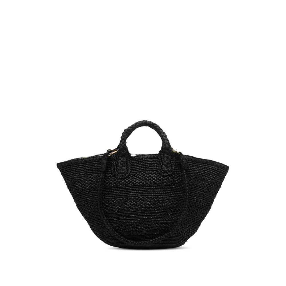 black woven design magnetic closure two handles removable straps four internal pockets
