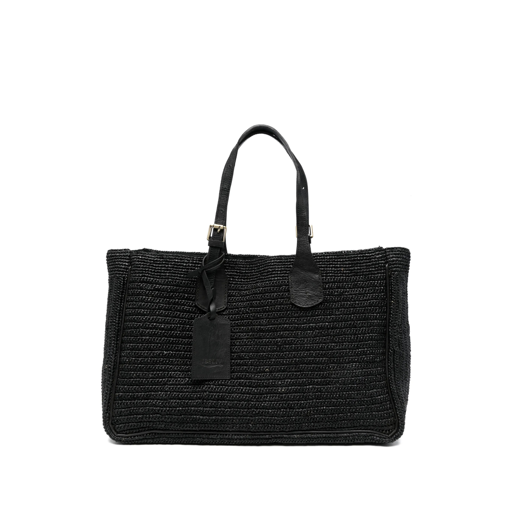 black woven design top handle tag buckle detail top opening