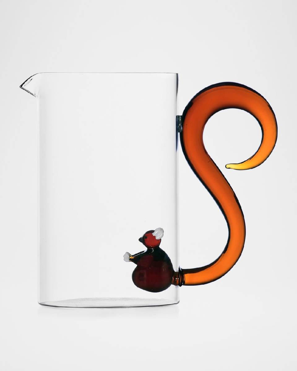 Jug from the Animal Farm collection featuring a squirreltailed handle Designed by Alessandra Baldereschi Handcrafted of borosilicate glass Approx. 4.33"Dia. x 7.09"T Capacity: 49 oz. Item Weight: 0.2 lb Dishwasher safe; hand washing recommended Imported