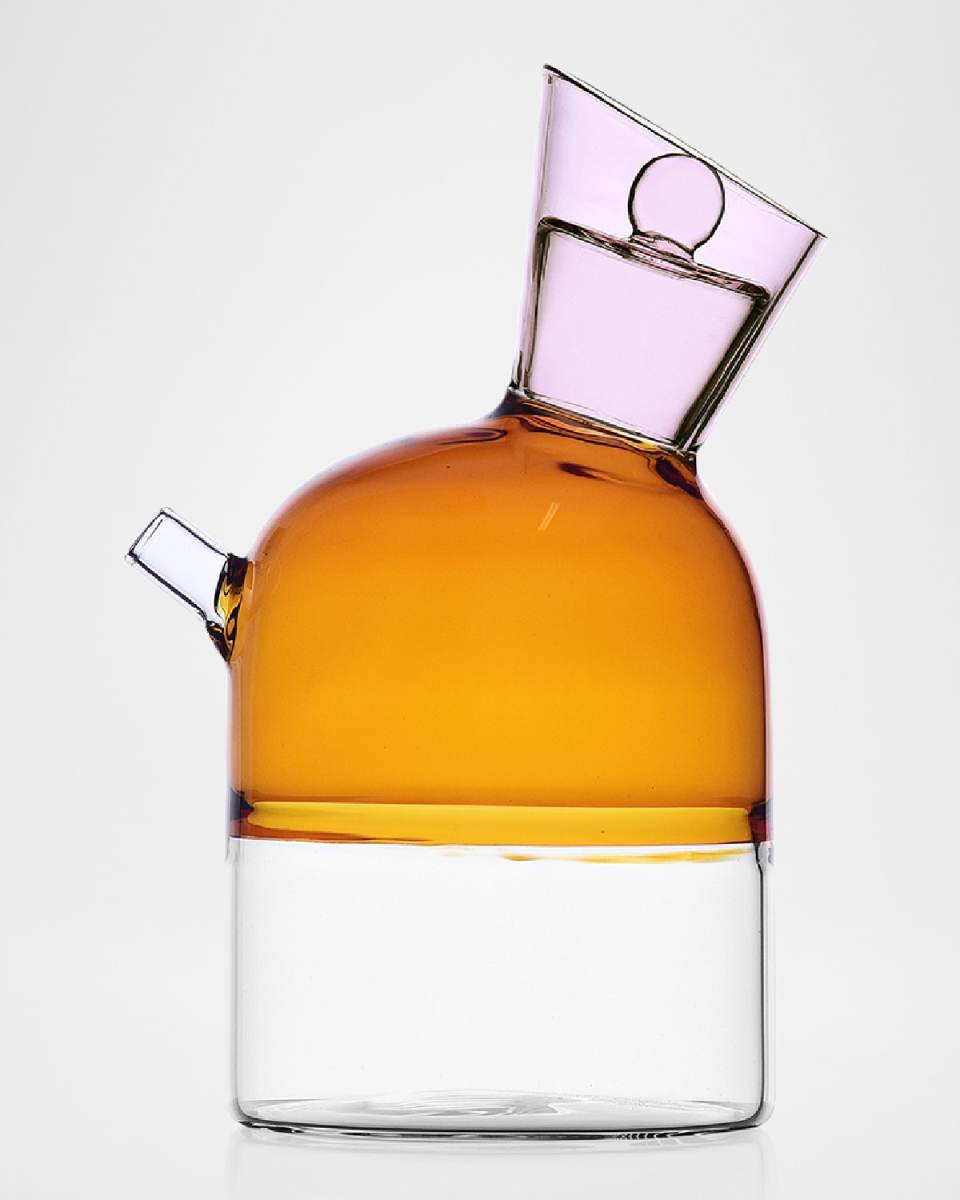 Lampworked and handmade oil bottle from the Travasi collection Designed by Astrid Lugio Handcrafted of borosilicate glass Approx. 3.54"Dia. x 6.3"T Capacity: 10.8 oz. Item Weight (Lbs.): 0.1 Dishwasher safe; hand washing recommended Imported
