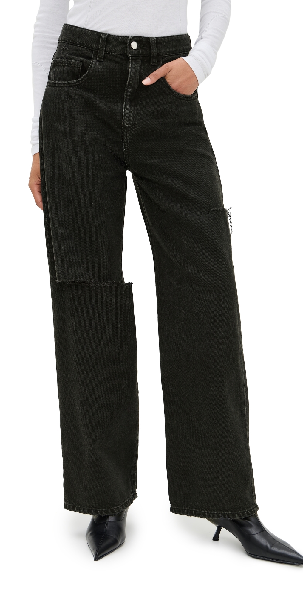 Fabric: Mid-weight, non-stretch denim. Rip at thigh and knee. Button closure and zip fly. 5-pocket styling. Shell: 100% cotton. Wash cold. Imported, Tunisia. Measurements: Measurements from size 24 Rise: 12.25in / 31cm Inseam: 29.5in / 75cm Leg opening: 19.75in / 50cm