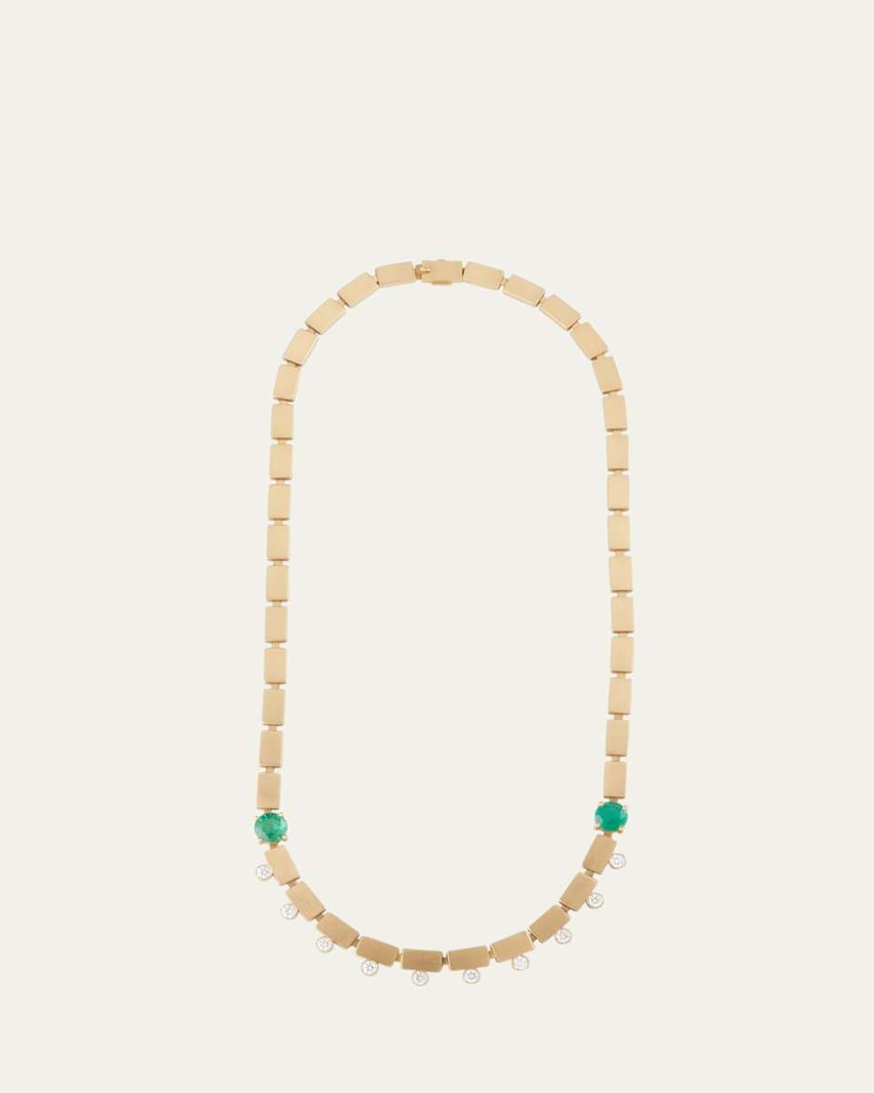 ILEANA MAKRI necklace Approx. 16.93" length (43cm) Polished 18karat yellow gold White diamonds and emeralds Emerald total carat weight: 2.50 Diamond total carat weight: 1.03 Pushlock closure Made in Greece
