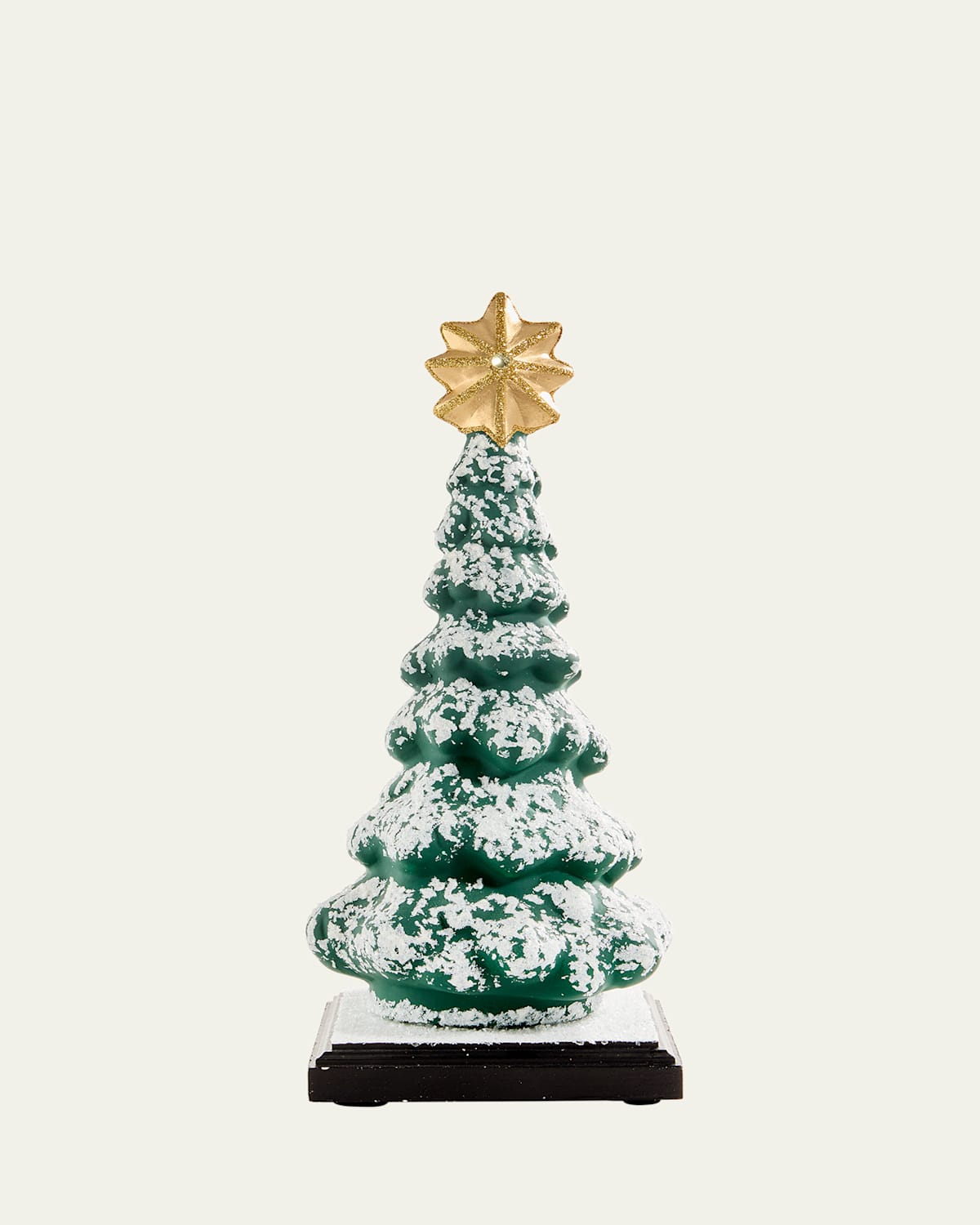 This handpainted Christmas tree stands on a square pedestal. The paper mache tree is trimmed with snow and topped with a gold star. Handcrafted of paper mache and wood Approx. 11.81"L x 4.9"W x 4.9"H For indoor use Made in Germany Boxed Weight (Lbs): 2.0